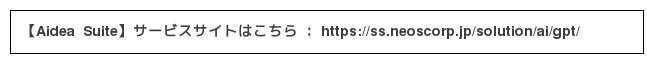 ネオスでは、チャットボット事業を通じて培ってきたAIの知見や技術を活かし、各社専用のセキュアなAIチャット環境をスピーディーに構築・提供することが可能なフレームワーク【Aidea Suite】を提供しています。組織内における安心・安全なGPT利用に加え、固有の業務やサービスニーズにフィットさせたAIソリューションへのカスタマイズにも対応しています。企画検討段階からご要望に応じた活用提案を行うことでビジネスにおけるGPTモデルの活用を幅広く支援するとともに、最新言語モデル「GPT-4o」対応により最先端のAI導入を手軽に実現いたします。