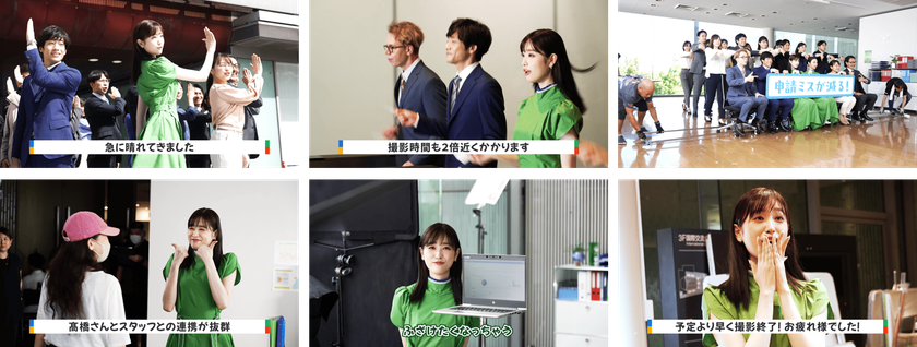 当日はあいにくの曇り空…と思いきや、撮影が始まったとたん快晴に!前回に続いて晴れ女ぶりを発揮した髙橋さん。今回は大人数で動きを合わせる難しいシーンが続くうえに、二人の髙橋さんが登場するということで撮らなければいけないカットも2倍…そんな大変な撮影でも笑顔を絶やさず、「ついついふざけたくなっちゃう(笑)」と多彩なアドリブで現場を和ませてくれました。サービス精神とやさしさに溢れる髙橋さんの姿をお楽しみください!