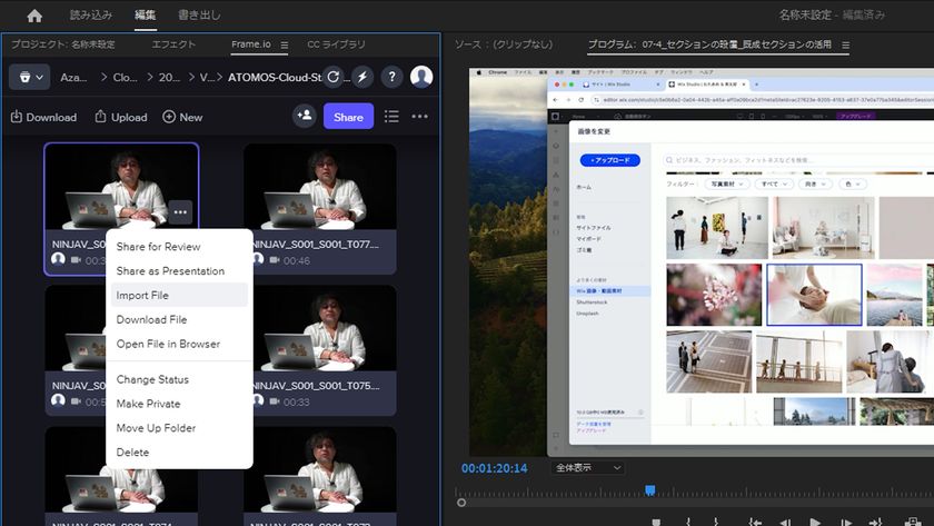 データをクラウド経由で編集ソフト(Adobe Premiere Pro)に送り込み、効率的に編集する流れ
