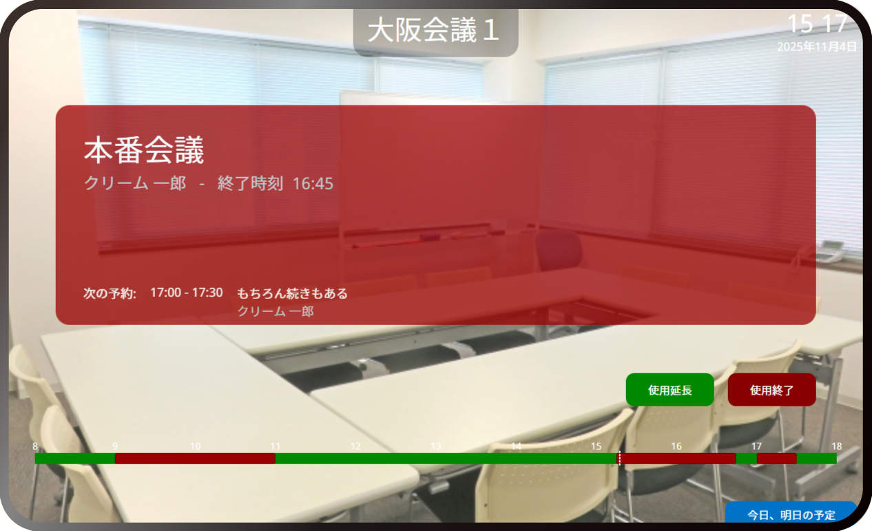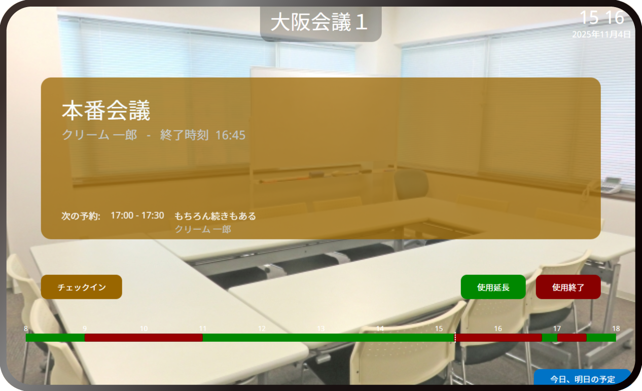 「OnTime Rooms」は、会議室前のデジタルサイネージや、開催中の会議一覧・利用状況を表示するサイネージを提供するソリューションです。
