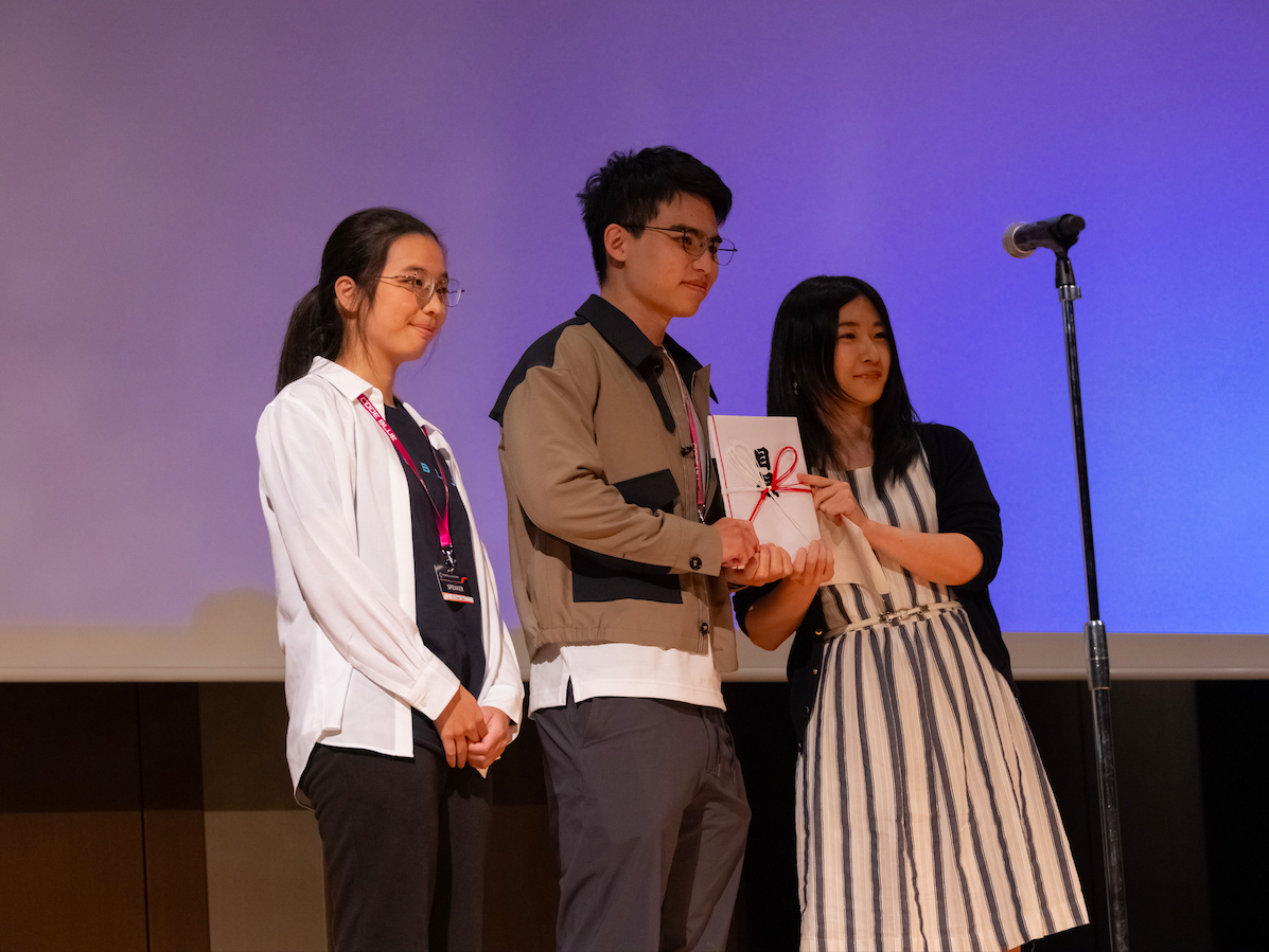 奨励金を授与されたユーシュエン・ルオ氏(左)、ヨンシュー・ヤン氏(中央)と、レビューボード(審査+プレゼンター)の中島 明日香氏(右)