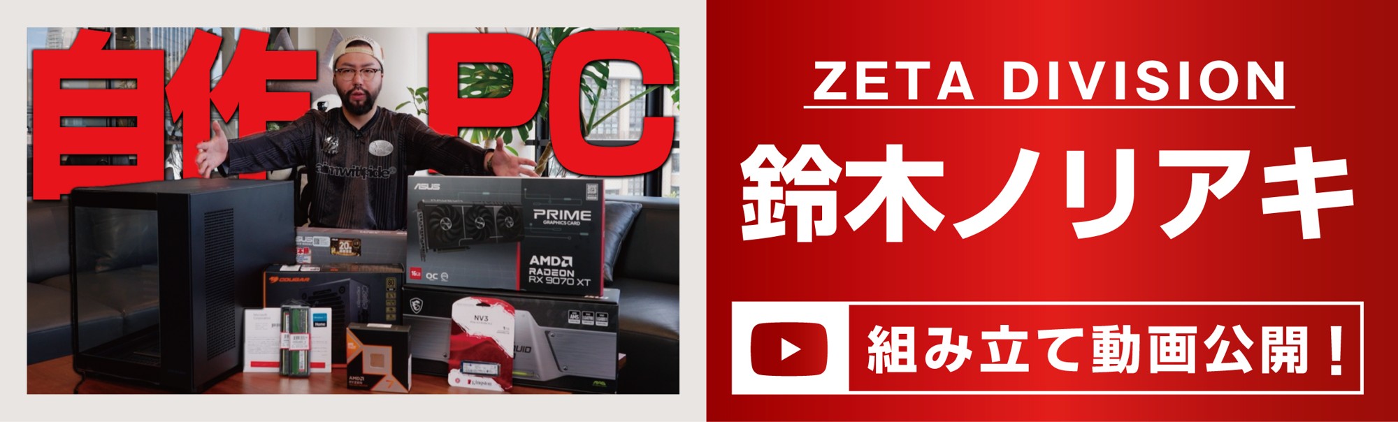 ZETA DIVISIONに所属するCREATOR 鈴木ノリアキ が実際に「ゲーミングPC 組立キット福袋」の組み立てに挑戦した動画を下記YouTubeチャンネルにて公開いたします。
