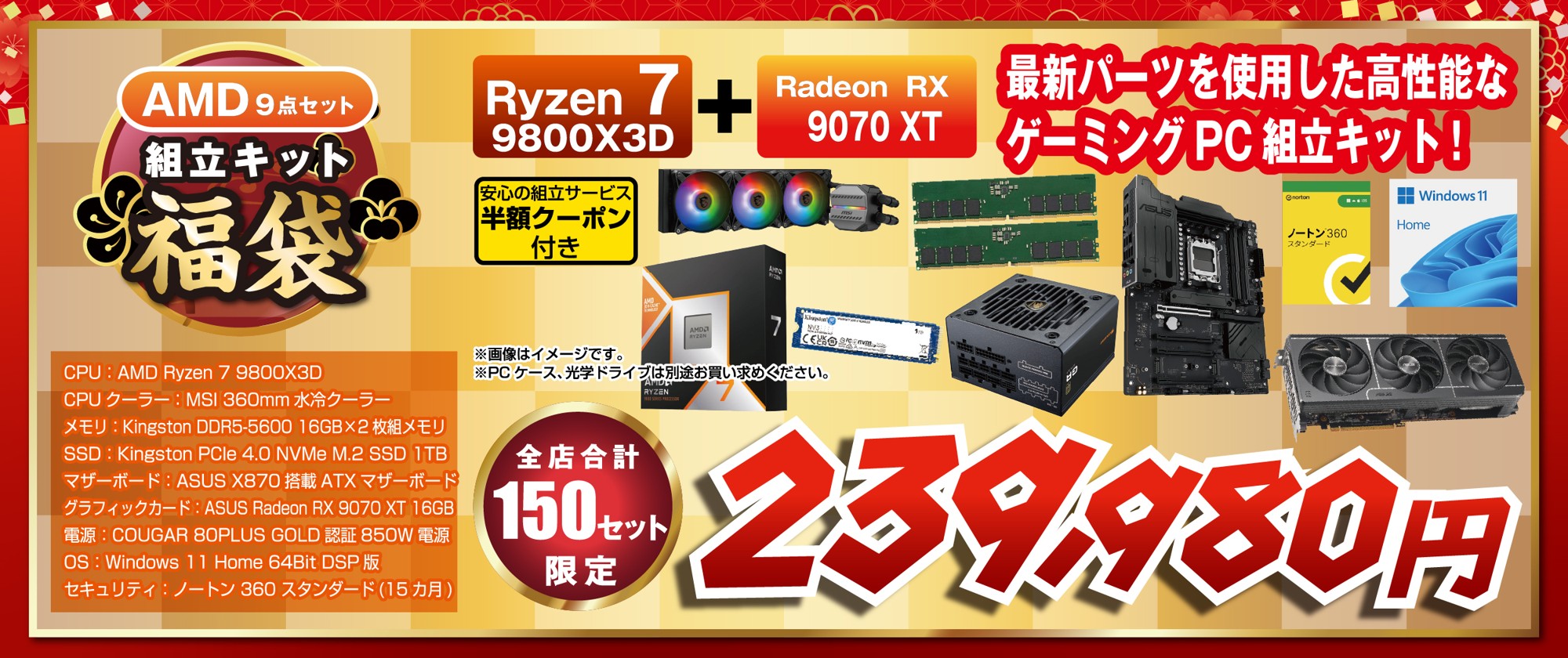 2. AMD 9点セット 組立キット福袋239,980円<全店合計150セット限定>
