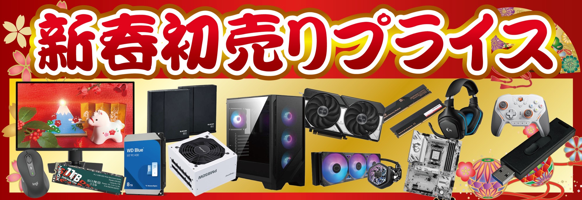 2026年1月12日(月・祝)までのセール期間中、自作パソコンパーツやパソコン周辺機器を「新春初売り」ならではの価格にてご用意いたします。ぜひご期待ください!※店頭在庫に限りがございますので売り切れの際はご了承ください。