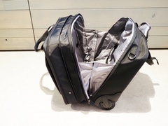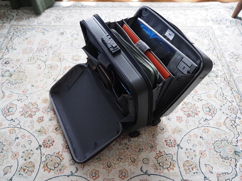 書類の仕分け用内装仕切りを取り外せば、普通のスーツケースのようになり、小旅行用としても使える点も気に入った。詳細は以下の通りだ。
