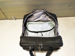 デジタルデバイスや1~2日分の着替え衣料の収納に対応していることは最低条件。特に重視したいのは、ノートPCをさっと取り出すことができるフロントポケットの有無だ。普段の移動で使うのでこの点だけは妥協できない。