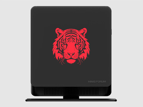 CPUにRyzen 7 7840HSを搭載したミニPCだ。スタンドを利用して斜め方向で設置するスタイルや、トラのイラストがLED照明で正面パネルに浮き上がる独特のデザインが目を引く。