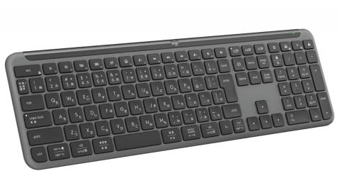 キーボードでもう1つ紹介しておきたいのが、Logi BoltとBluetoothによるワイヤレス接続に対応したテンキー付きのキーボード「SIGNATURE SLIM KEYBOARD K950」だ。ミニPCのほかにスマホやタブレットなど、最大3台までのデバイスを自由に切り換えてテキストを入力できる。本体サイズは433.8×134.8×23.1mmと、テンキー付きのキーボードとしてはスリムでコンパクトなので、狭い場所でも使いやすく、使い終えた後も収納しやすい。