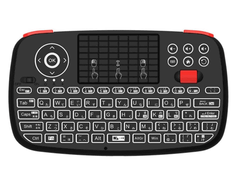 日本語配列を採用する小型キーボードの上部に、マルチタッチ対応のタッチパッドを備えるユニークな小型キーボードだ。十字配列のカーソルボタンやスクロールボタンのほか、上部にはLRのレバーボタンを装備しており、高機能なマウスのような感覚で便利にミニPCを操作できる。