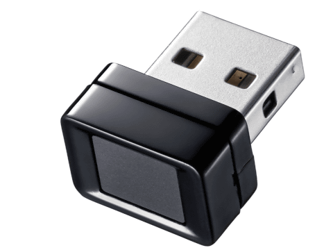 USB接続の指紋認証リーダーだ。前面のUSBポートにこれを挿してWindows Hello機能で指紋を登録しておけば、リーダー部分に指先を触れるだけでWindows 11にサインインできるようになる。キーボードを取り出してPINやパスワードを入力するよりは、はるかにスピーディにPCを起動できるため、リビングなどキーボードやマウスをすぐに操作できないような場所でPCを使いたいなら、ぜひ導入したい。
