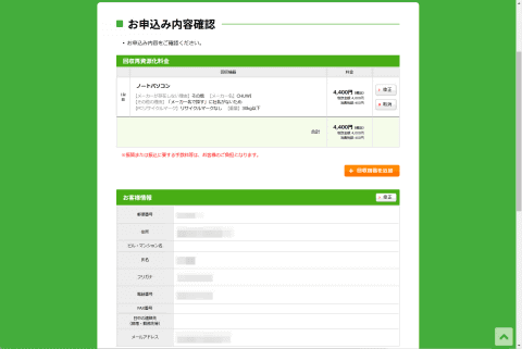 ちなみにフォームに記入する内容は、発送先などの個人情報はほぼ共通だが、メーカー名や型番、およびPCリサイクルマークがない理由などを入力する必要がある。自作PCや海外購入品でも同様だ。料金は今回のようなノートPCやデスクトップPCで4,400円、液晶ディスプレイも同じく4,400円、CRTディスプレイで5,500円など、品目別に設定されている。