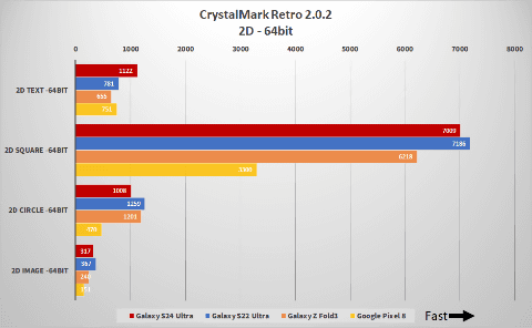 CPUだけで見れば、Google Pixel 8のGoogle Tensor G3はSnapdragon 8 Gen 1よりも世代が新しい上にパフォーマンスコアが1コア多いため、差が出ていると考えられる。Snapdragon 8 Gen 1がSnapdragon 888 5Gよりも遅い理由は筆者もよく分からないが……。