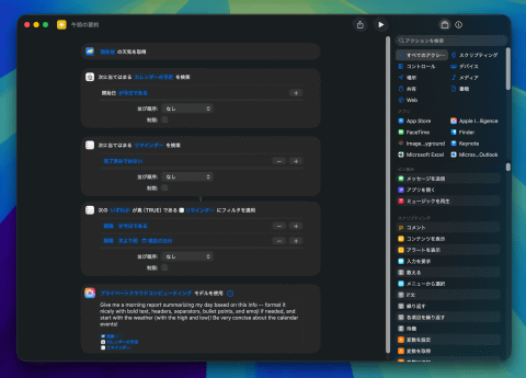 「ショートカット」アプリのルーチンに生成AIが組み込めるようになったことで、さらにパーソナルかつ具体的な情報を出力できるようになったわけだ。
