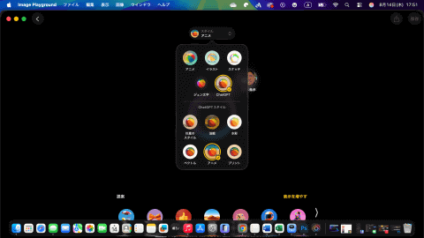 しかし、今回「Image Playground」に「ChatGPTスタイル」が追加されたことにより、さらにバリエーション豊かな画像を生成できるようになった。