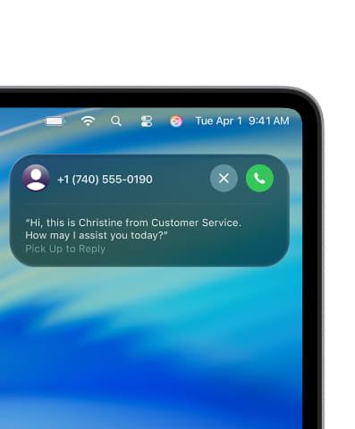 連携という点では、Mac用に「電話」アプリが新しく追加されたこともトピック。大画面で履歴、連絡先、留守番電話などにアクセスできるのはもちろんのこと、未知の電話番号からの着信時に名前と用件を確認する「着信スクリーニング」、サポートセンターへ問い合わせした際にオペレーターにつながったことを知らせる「保留アシスト」などの機能も利用できる。