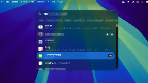 Mac標準の検索機能「Spotlight」は、もはや「検索機能」だけにとどまらないツールへと進化している。たとえば「Spotlight」に、「メッセージ」と入力すると「メッセージを送信」というアクションがサジェスト(提案)されるので、その後、「メッセージ内容」と「宛先」を入力すれば、アプリを起動することなくキーボード操作だけで素早くメッセージを送信できる。