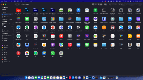 「Finder」から「アプリケーション」フォルダーを開けば一覧表示できるが、Macに慣れていない方がその方法にたどり着くのは少々難しいように思う。一覧性を重視するなら、「アプリケーション」フォルダーをDockに登録することをお勧めする。
