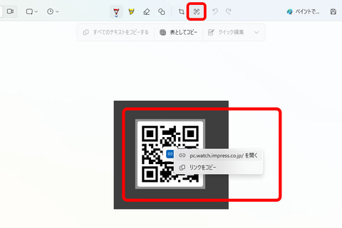 これと同じような手順でQRコードを読み取ることも可能だ。たとえば、あるWebサイトにPCからアクセスしたいのに、スマホ向けのQRコードしか案内にない、といったシチュエーションに遭遇することもあるだろう。そういう場面で「スマホで一度アクセスし、そのURLをPCに共有する」みたいな回りくどい手順を踏まずに済むわけだ。