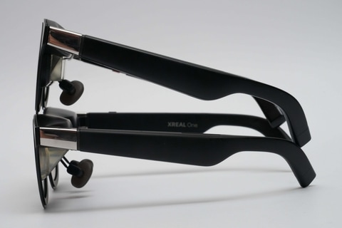 モバイルデバイスとしての使い勝手についても触れておこう。まずは装着感から。XREAL One Pro本体の実測重量は92g前後。一般的なメガネと比べれば4倍ほどの重さだが、ツルが細く、シリコン製の鼻パッドの当たりが優しいので、長時間装着していても疲れは少ない。目自体への疲れも、ノートPCやタブレットと大差ないと思う。個人的にはXREAL One Proを装着していたほうが、メガネやサングラスと同じように空調などの風が直接眼球に当たらないので、ドライアイ的症状は出にくいと感じている。