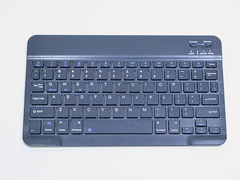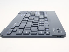 無線マウスは単4形電池2本(別売)で使用できる薄型タイプ。無線キーボードもかなり薄く、背面部は一面、金属の板となっているが、全体的に軽量でコンパクトサイズの英語(US)配列。キータッチはややパシャパシャした感触となっており、こちらは内蔵バッテリで動作し、充電は側面のUSB Type-C端子で行なう。いずれもBluetooth接続で使用するものとなっている。