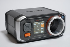 エアーソフトガンのカスタムを楽しむなら必ず買わなければならないデジタルデバイスが「弾速計」。弾速計は名前の通り、BB弾の速度を測るための計測器で、筒状の内部に設置されたふたつの赤外線センサーによって、BB弾が通過するのにかかった時間をもとに、BB弾の速度を割り出します。また、BB弾の速度だけではなく、BB弾が持つ運動エネルキー、連射速度も計測可能です。