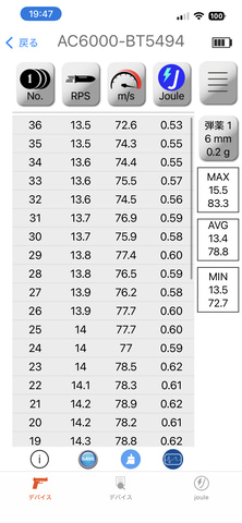 筆者がメインで使っているのは、Bluetooth経由でスマホと接続できるACETECH製「AC6000MKIII BT」(実売価格1万5,000円前後)。iOS、Android用にアプリ「AceSoft」が用意されており、計測結果を同期したスマホに表示可能。また計測結果をCSV形式のファイルとして共有して、そのデータをもとに表やグラフを作成できます。筆者としては、エアーソフトガンのレビュー記事を書くためにも非常に役立っているアイテムです。