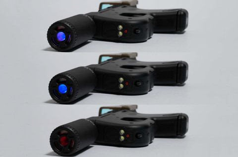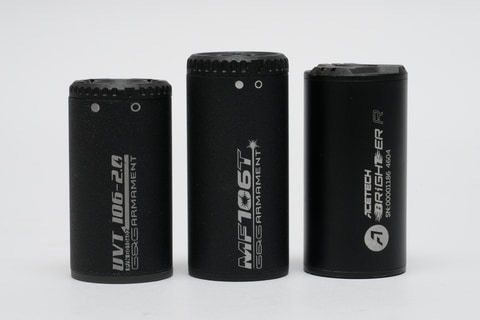 必須ではないですが、インドアサバゲーをプレイするならぜひ欲しいデジタルデバイスが「トレーサー」。トレーサーには強力な紫外線LEDライトが内蔵されており、BB弾が通過する瞬間に光を照射するように設計されています。トレーサーに組み合わせるのが、蓄光塗料が練り込まれた「蓄光BB弾」。蓄光BB弾は光を蓄えて一定時間自発光する性質を持ちます。エアーソフトガンにトレーサーを装着して、蓄光BB弾を発射すると、まるでレーザー光線のように弾道が光るというわけです。
