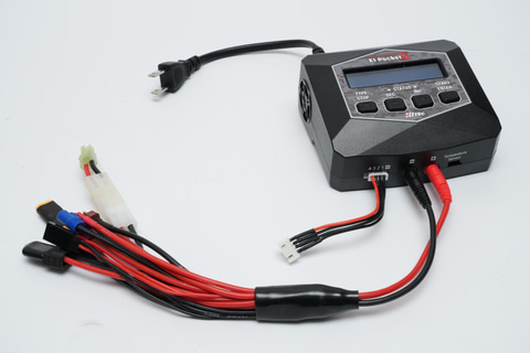 電動ガンのバッテリを充電するためには専用の充電器が必要です。いま筆者が使っているのは、ハイテック「X1 Pocket II」(実売価格5,600円)と、東京マルイ「MS•Li-Po セーフティチャージャー」(実売価格1万2,800円)、「MS•Li-Po バッテリーチェッカー」(実売価格6,800円)。2つの充電器を持っている理由は、一般的なリポバッテリと、東京マルイ製リポバッテリ「MS•Li-Po バッテリー」には互換性がないからです。