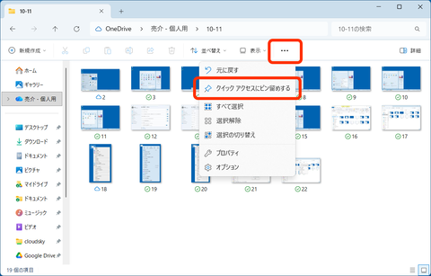 また、エクスプローラー内でのファイルの表示サイズ、クイックアクセスへの登録もこの画面から簡単に行なえる。