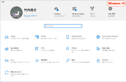 Windowsの各種設定を行なう「設定アプリ」の初期画面を比較してみよう。Windows 10のホーム画面では、項目がカテゴリごとにまとめられている。Windows 11のホーム画面では、こうした機能のカテゴリが左の列に並び、日常的によく利用される設定に関する機能を右にまとめている。左のカテゴリボタンをクリックすると、そのカテゴリに関する設定機能が右に表示される。