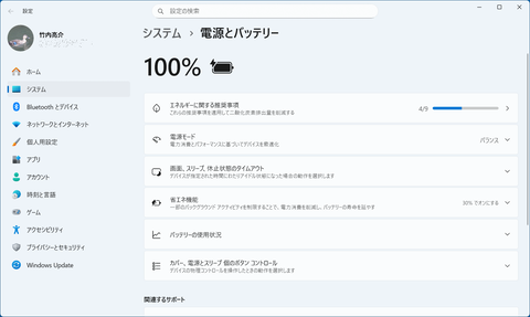 実際の設定を行なうにはワンクリック余計に必要にはなっているが、PCを利用する際に必要な設定をまとめて呼び出せるのは便利だ。右下にある歯車アイコンをクリックすると、設定アプリを呼び出せる。