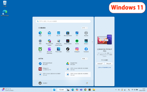 まずはWindows 10とWindows 11のデスクトップから見ていこう。スタートボタンをクリックしたときの状況を見てもらいたい。