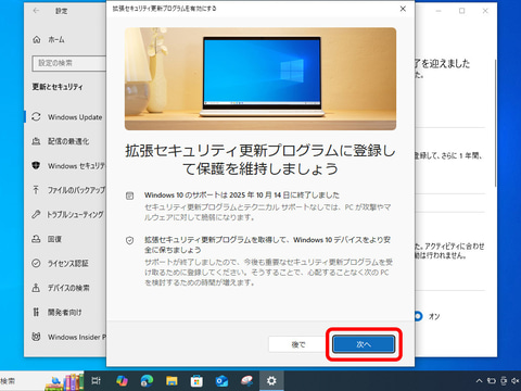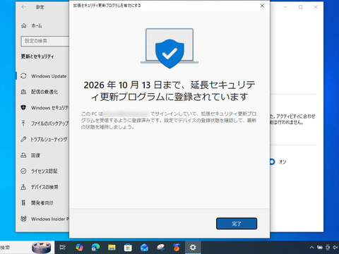 といっても、何か特別な画面が表示されたりするわけではない。案内に従ってボタンを押していけば、淡々と処理され、「延長セキュリティ更新プログラムに登録されています」という画面になって完了した(「拡張」ではなく「延長」という表現になっていた)。