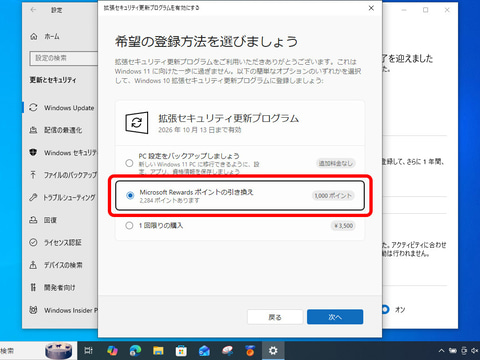 しかし、個人利用のPCとはいえ、Windowsバックアップをオンにすることで、パスワードをはじめとするPC内のデータがサーバー側に保存されるのはなんとなく不安、という人もいるかもしれない。その場合は2つ目の方法、「Microsoft Rewards」のポイントを消費してESUに登録する方法を選ぶとよい。