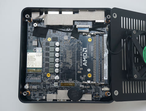 本機が搭載するのは8コア/16スレッド対応の「Ryzen 7 5825U」で、内蔵するCPUコアやGPUコアの世代はRyzen 5 7430Uと同じだ。しかしCPUコア数が多い分、Ryzen 5 7430Uよりは性能が高い。CPU冷却用ファンだけではなく、メモリやSSDを冷却するためのファンを装備しており、長時間安心して利用できる。3系統のディスプレイ出力や2.5GbEの有線LANポートなど、デスクトップPCとして利用する場合の基本的なインタフェースは過不足なく備える。