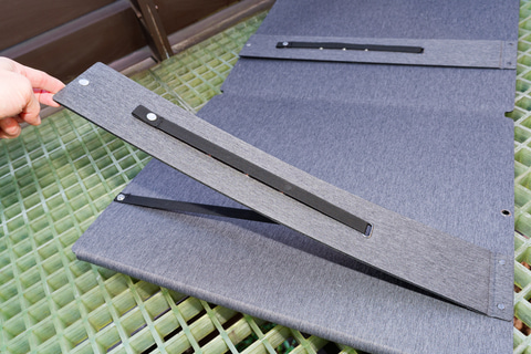 物干し竿から吊るす場合は耐荷重も気にしておきたい。たいていの物干し竿は10kg程度までしか耐えられないので、ほかに洗濯物も干すとなると余裕がないのだ。筆者宅の物干し竿も耐荷重10kgで、購入から10年以上経過して劣化していたこともあったので、耐荷重50kgのものに買い替えた。今回のように日常的に使い続けるということであれば、ある程度屋外に放置しても問題のない防水・防じん性能を持つソーラーパネルにして、設置・撤去の手間を最小限にするのが良さそうだ。