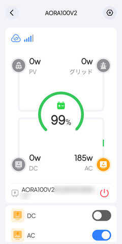 それと、ソーラーパネルを複数枚利用するときには頭に入れておくべきこともある。AORA 100 V2は、ソーラーパネルからの充電時の入力上限がデフォルトで180Wあたりに設定されているのだ。200Wのソーラーパネル1枚ならそのままでも問題ないといえるが、2枚以上組み合わせて合計出力が200Wを超えるときは、この制限をアプリで解除しておこう。あと、複数枚のソーラーパネルを直列でつなぐための分岐ケーブルも別途必要だ。