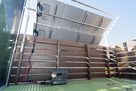 なぜこれらを選択したのかを軽く説明しておこう。まず、筆者の仕事部屋は2階建ての自宅1階にあり、小さな中庭はあるけれど特に冬の季節は1日を通じてほとんど太陽光が届かないため、ソーラーパネルの設置には適さない。2階のベランダであれば日当たりがよく、午前中から夕方まである程度の発電が見込めるので、ここにソーラーパネルを設置するのが妥当だ。