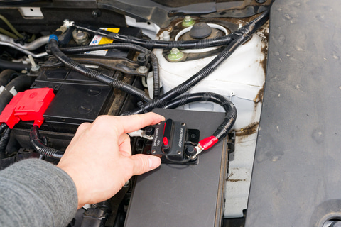 Charger 2は車載バッテリと直結することが必須。しかし多くの場合、バッテリはエンジンルームにあり、そこからCharger 2の設置場所(一般的にはポータブル電源を載せる車両後部のラゲッジスペースなど)まで配線しなければならない。エンジンルームから車室に引き込むのがまず大仕事で、ケーブルが傷つかないようにクルマの内装を外して配線を隠すなどの作業も必要だ。