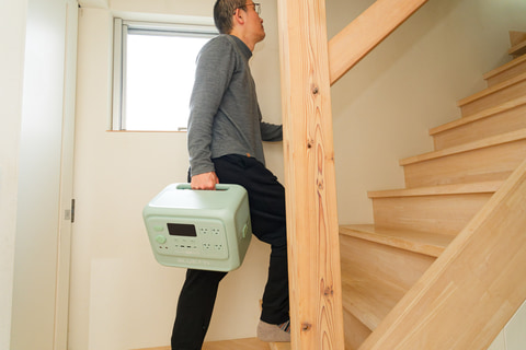 ただ、2階ベランダのソーラーパネルから1階仕事部屋まではそこそこ距離があり、ケーブルを屋内に引き入れるのも難しい。なので、ポータブル電源を充電する際にはそれを持って1階と2階を往復する形になる。大容量で重さのあるポータブル電源だと厳しいため、仕事用PCを問題なく動かせる出力と容量を備えた、なるべく軽量なものにしたかった。