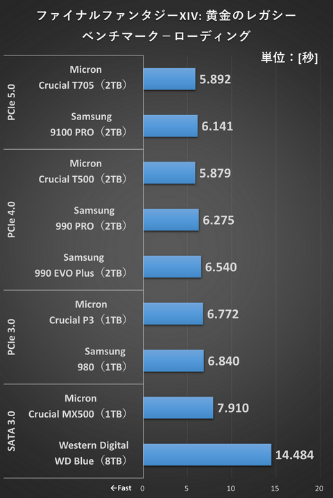 次はファイナルファンタジーXIV: 黄金のレガシー ベンチマークの実行時に記録されるローディングタイムを見ていこう。