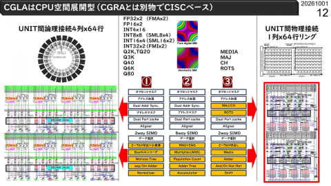 実はCGLAとよく似たものにCGRA(Coarse-Grained Reconfigurable Arrays)というアーキテクチャが存在する。実際、中島教授の研究室におられるLE Vu Trung Duong助教は「CTFE: A High-Efficient Heterogeneous Cryptographic CGRA for Diverse Security Applications」という論文を2025年に出されているし、古いところでは2019年のFCCM(International Symposium on Field-Programmable Custom Computing Machines)には「Impact of FPGA Architecture on Area and Performance of CGRA Overlays」なんていう論文が出ている。これは何か?という話を説明したい。