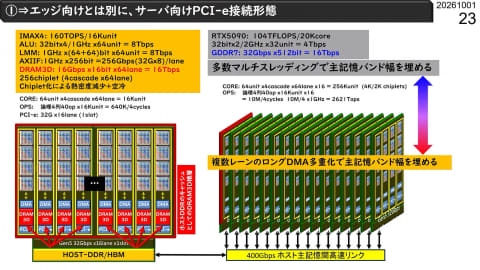 ここでは「Chip #0/#1」となっているが、これは物理的に異なるチップというわけではなく、PEを64個まとめた塊をチップと呼んでいるものと思われる。このチップも複数個、ディジーチェーンでつなぐことが可能だ。