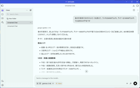 あとは入力欄に、自分の好きなように質問を入力したり、AIに依頼したい作業を書き込んでいけばよい。ChatGPTなどと同じような感覚で利用できるし、複雑な設定を細かくいじろうとしない限り、導入作業は非常に簡単だ。
