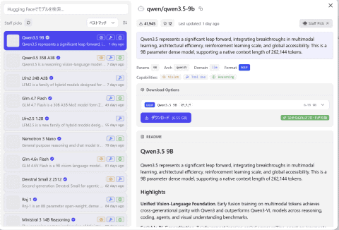 このほかにもさまざまな指標があるのだが、ひとまずパラメータ数と量子化レベルの2点だけ押さえておけばいいだろう。自分のハードウェアで動作可能なモデルは、後述のLM Studioで分かりやすく表示されるので、まずはそれに従うのが一番だ。