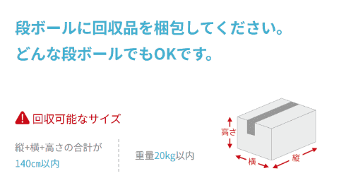 では実際に一連の流れを試してみよう。申し込みにあたっては、ひとまずPCを含む回収対象が、同社が指定するサイズ(縦横高さの合計が140cm以内、重量が20kg以下)に収まるかだけ確認しておけばよい。単品でこのサイズを超えることは考えにくいが、たとえば巨大なタワー型PCに加えて、大型のプリンタやスキャナなどを同時に回収してもらう場合は、オーバーしてしまう可能性がなくはないので注意したい。