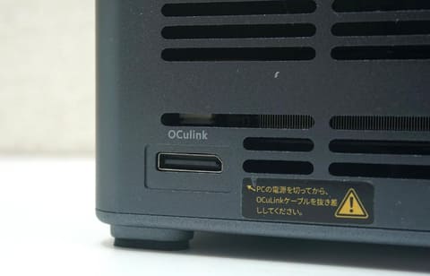このモデルでもGPUにはRadeon RX 7600M XT、VRAMは8GBを搭載している。PCと接続するインターフェイスはUSB4とOCuLinkを搭載しており、ミニPCなどでも利用可能だ。