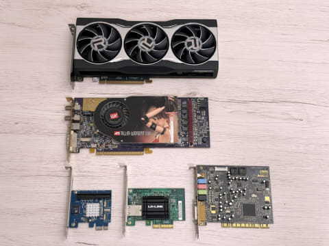 3つ目は拡張カードだ。今はネットワークカードや、サウンドはオンボードが当たり前だが、昔はオンボードされていないマザーボードが多く、拡張カードを挿して使っていた。ほかにもモデムやSCSIなど最近は使っていないカードなどもあり、とにかく拡張スロットの数が重要だった。