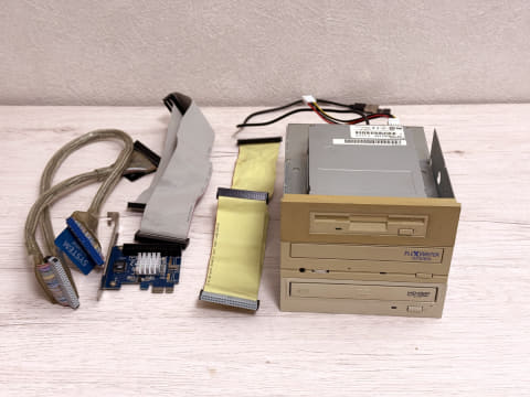 ただ、HDDは見つからなかったが、IDEの光学ドライブは手元にあったプレクスターのCD-Rドライブと、東芝製のHD DVDドライブを使うことにした。またFDDも用意し、こちらはUSB接続変換を使う。