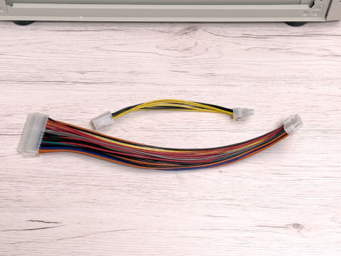 電源の配置はさすがにFLP02のレイアウトの都合により変更できないので、可能な限り表で色付きのケーブルを配線し、拡張スロットをとにかく埋めよう!というコンセプトで進めることにした。さらにレトロなケースに合わせた周辺機器も用意することにした。
